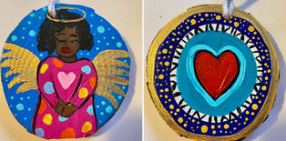 An original painting on a 3 inches/8cm wooden canvas! Each is unique and hand-painted on both sides with a different design. Perfect to hang on a narrow wall, on a door, or on your Holiday tree.